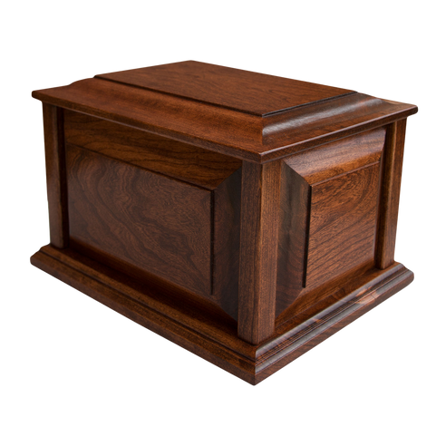 Crafted from solid Cherry wood, hand rubbed with a Tuscany Walnut finish. 8.5 x 4.25 x 9 | 200 cubic inches
