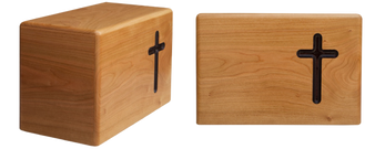 Solid Cherrywood with a natural finish and routed stained cross 9.5 x 5.5 x 6.75 | 220 cubic inches