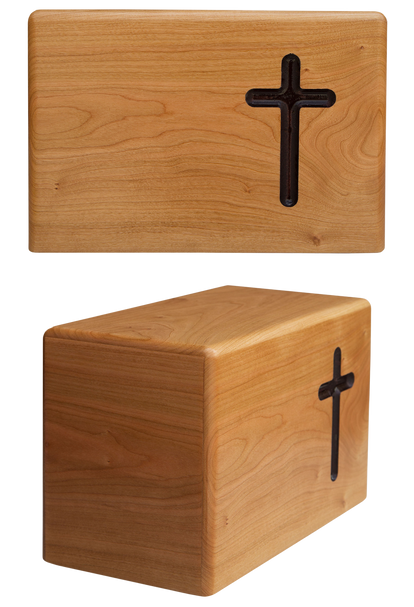 Solid cherry with a natural finish (With or without routed cross) 5 x 2.75 x 3.5 | 17.5 cubic inches