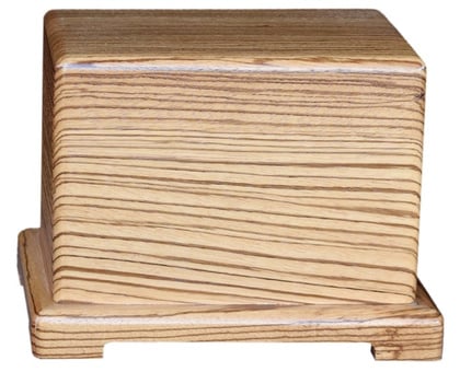 This urn is crafted with the rare Zebrano wood which is visually striking. 10.125 x 6.625 x 7.25 | 240 cubic inches